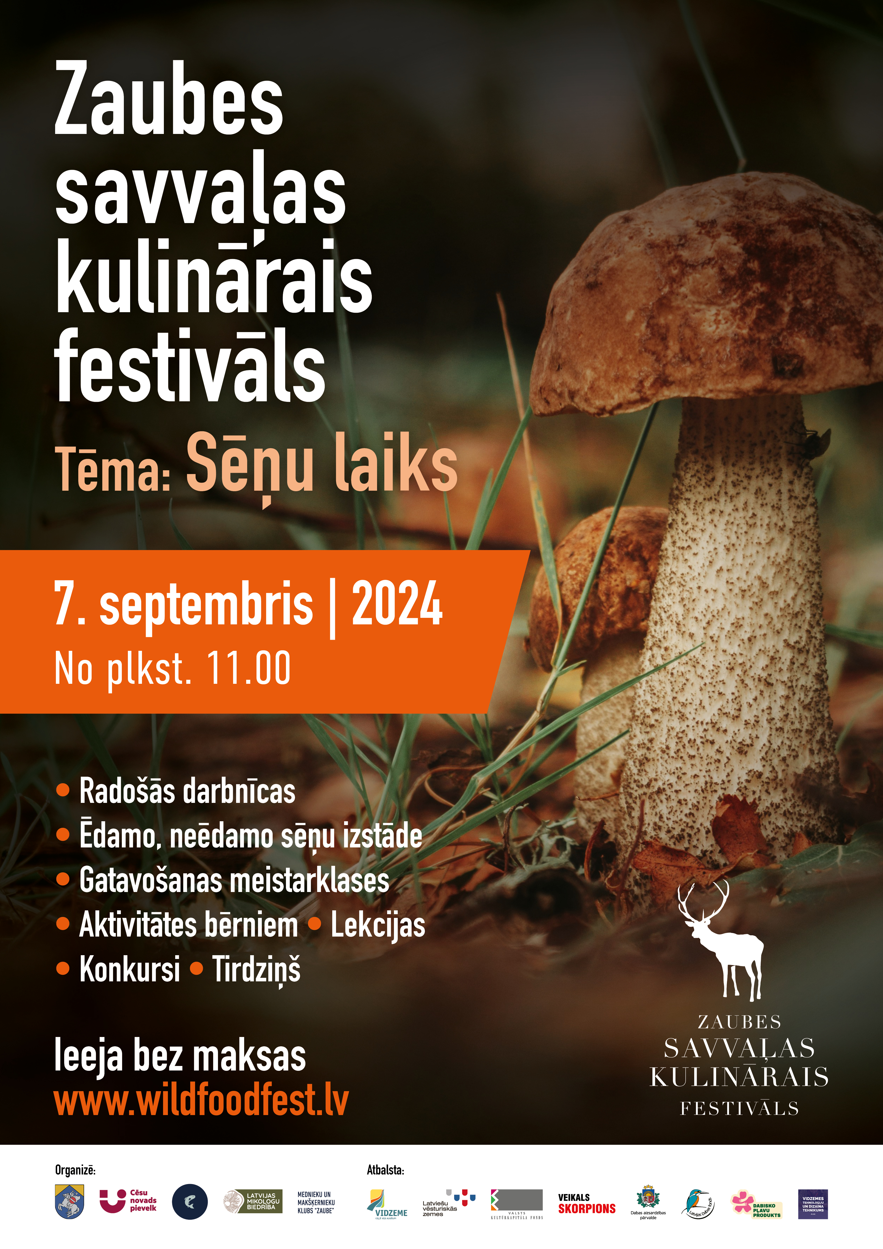 Zaubes savvaļas kulinārais festivāls jau astoto reizi pulcēs apmeklētājus 2024. gada 7. septembrī, lai kopā ar pavāru mākslas meistariem un saimniecēm, medniekiem un makšķerniekiem, dabas pazinējiem un amatniekiem daudzinātu paaudzēs pārmantotās zināšanas par dabas veltēm. Šī gada festivāla tēma – “Sēņu laiks”. Tā izvēlēta par godu sēņošanas tradīcijas iekļaušanai Nacionālajā nemateriālā kultūras mantojuma sarakstā. Sēņu vākšana un izmantošana ir izsenis zināma tradīcija Latvijā, kura ir dzīva arī mūsdienās. Sēņu galvenais izmantošanas veids ir lietošana uzturā. Gandrīz vai katrā ģimenē ir sava sēņu mērces, zupas vai sēņu karbonādes recepte. Tās var sālīt, skābēt, marinēt, kaltēt, vārīt un cept. Tā ir būtiska mūsu kulinārā mantojuma daļa.